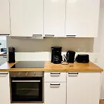 A cozinha totalmente equipada do Bege Apartments Inspirespace está equipada com forno e máquina de lavar loiça. A estação de comboios Baustrasse está a cerca de 5 minutos de distância do carro.